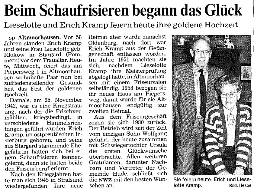 Erich Kramp – Zeitungsartikel Zum Vergrößern bitte anklicken Quelle: Nordwest-Zeitung vom 11. März 1975 Quelle: Nordwest-Zeitung vom 25. November 1992